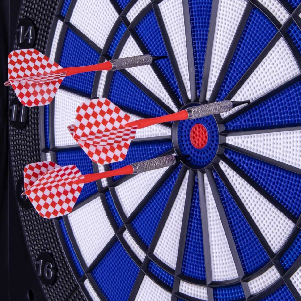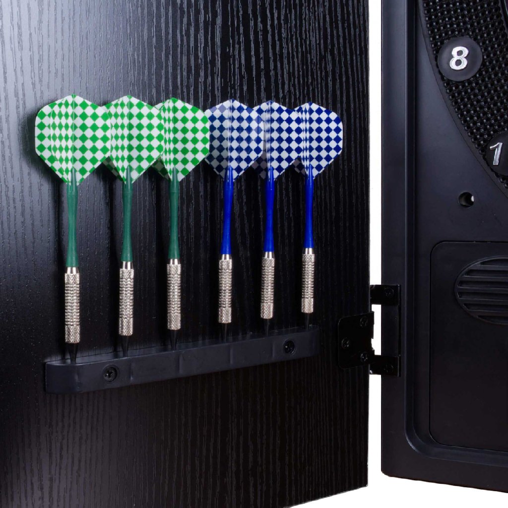 Elektronický terč pre celú rodinu a priateľov, ktorý ponúka zábavu až pre 8 hráčov naraz. S 27 hrami a 202 variáciami sa nikdy nebudete nudiť. Dvierka slúžia ako ochrana a úložisko pre šípky.