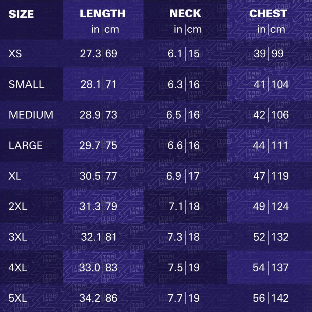 Veľkostná tabuľka dresov