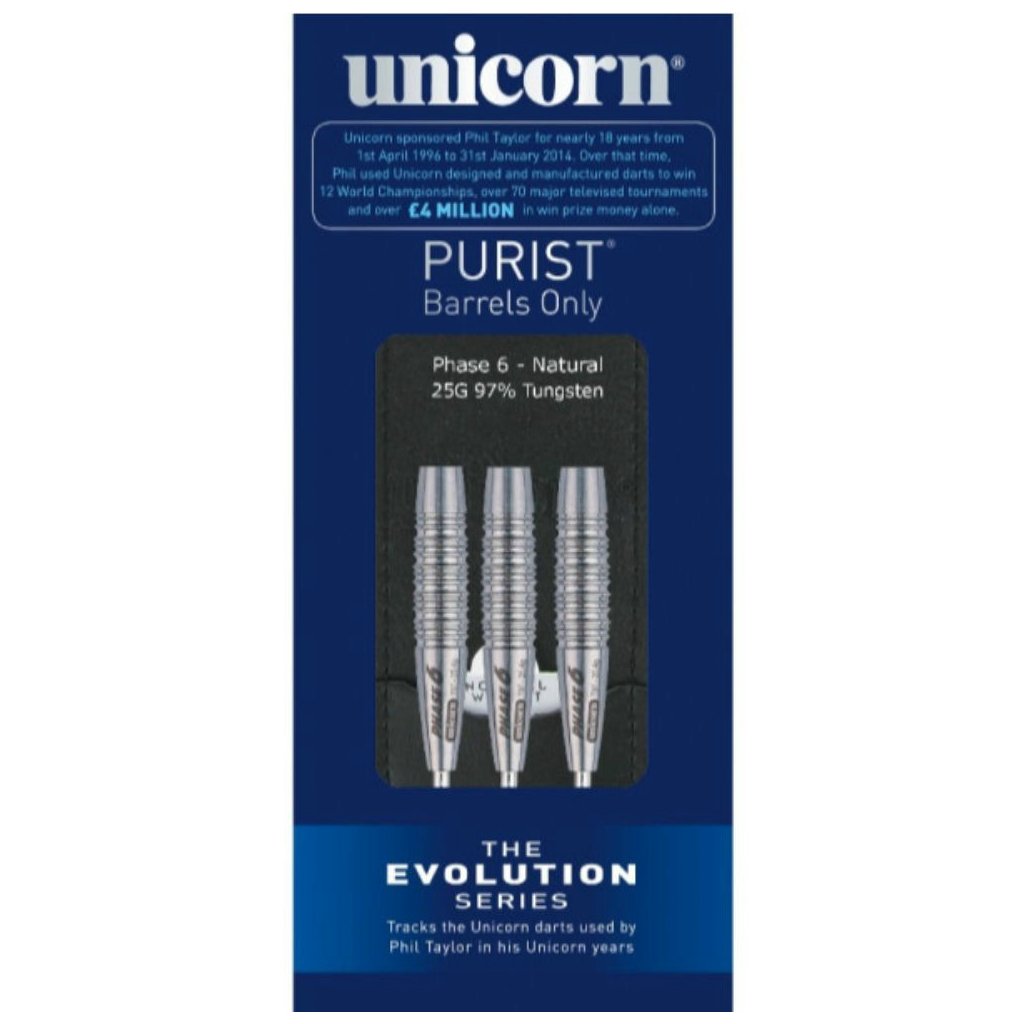 Šípky Unicorn EVO Purist Phase 6 sú ideálnou voľbou pre profesionálnych hráčov. Vysoký obsah volfrámu zaručuje vynikajúcu kvalitu a presnosť.